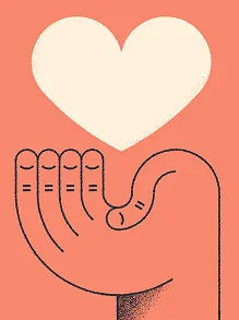 Fundraising illustration — hand dropping coins into a jar full of community items
