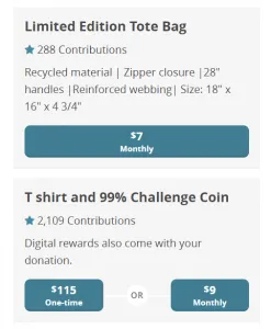 One of their most intersting tactics was to break down giving levels into one-time, monthly, and hybrid options. For example, you could give either $115 one time or $9 per month for a T shirt and Challenge Coin; other options were strictly monthly or one time. Their appeals focused heavily on monthly options with the goal of sustainability. We’re not certain…but this might have been one of the first examples of a large scale fundraising campaign that focused so heavily on monthly giving.